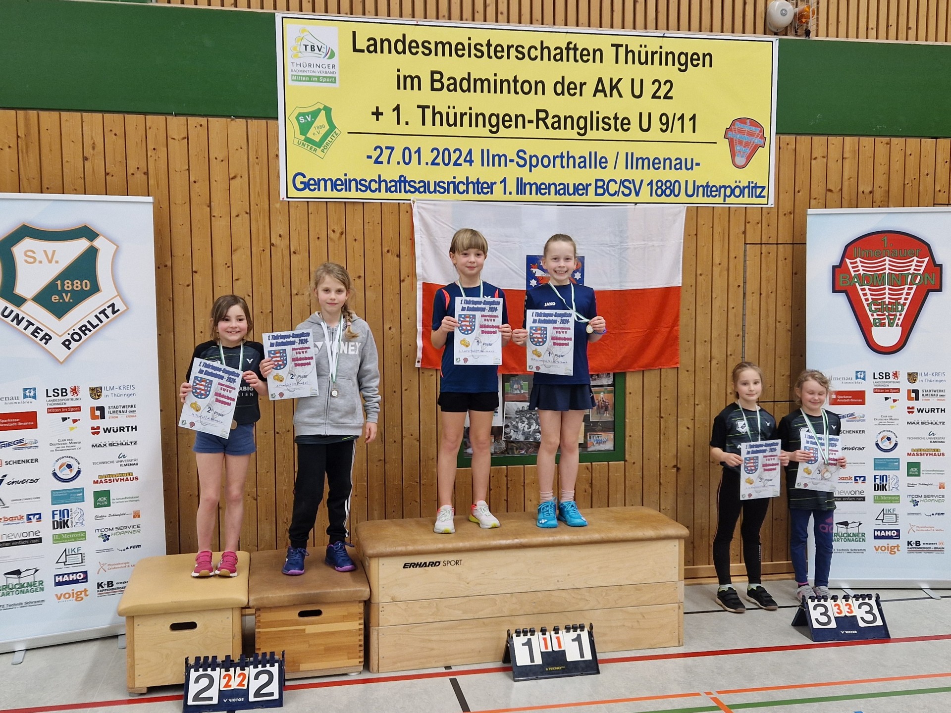 Bei den Junioren blieben (fast) alle Titel in Unterpörlitz. So konnte sich Kristin Böhme erneut zur 3-fachen Landesmeisterin küren und wiederholte somit das Kunststück aus dem Vorjahr. Im Einzel, im Doppel mit Johanna Preiß (GM Jena) und im Mixed mit Florian Otto gewann Sie alle Titel. Letztgenannter gewann ebenfalls im Einzel und im Doppel mit seinem alten Freund Justin Hennig (Lok Erfurt) und machte somit ebenfalls den Hattrick perfekt. Kristin und Florian spielen seit ca. 1,5 Jahren bei GutsMuths Jena in der Bundesliga und in der Regionalliga. Warum das so ist, zeigten Sie der Konkurrenz am Wochenende wieder eindrucksvoll!
